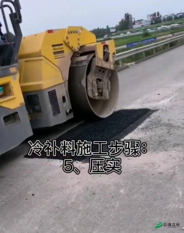 4、壓實路面。較好的路面壓實方式是用鋼輪壓路機(jī)或振動壓路機(jī),對于小坑洞可以采用鐵夯壓實。修補(bǔ)完的坑穴表面應(yīng)光潔、平整、無輪跡,坑穴四周和邊角一定要壓實、無松散,普通道路修補(bǔ)壓實度要達(dá)到93%以上,高速公路修補(bǔ)壓實度要達(dá)到95%以上。