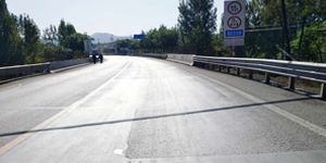 2020年4月28日我公司受平順公路管理段邀請(qǐng),在G341國(guó)道K729+450米處苗莊立交橋,采用“立合劑”處理瀝青路面龜網(wǎng)裂縫,請(qǐng)看下圖。瀝青路面龜網(wǎng)裂縫處理前:保持裂縫干凈干燥,用吹風(fēng)機(jī)把裂縫當(dāng)中雜物吹干凈,用紙膠帶把病害區(qū)域貼整齊。